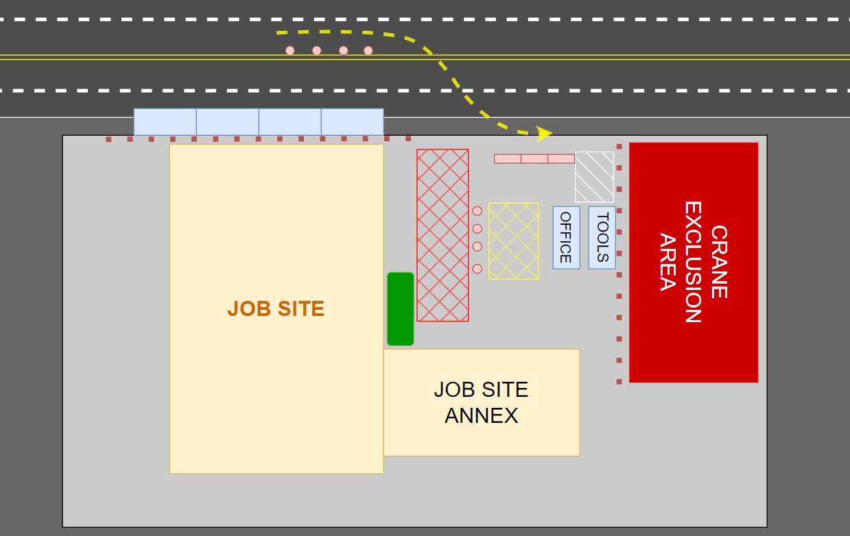 Although temporary, this site had tight spaces for cargo delivery and storage, on a densley populated route. The plan helped the team to forsee, and pass on to transport companies what they can expect to see and do upon arriving at the site, to assist with certainty, seamlessness and confidence for new drivers to the area.